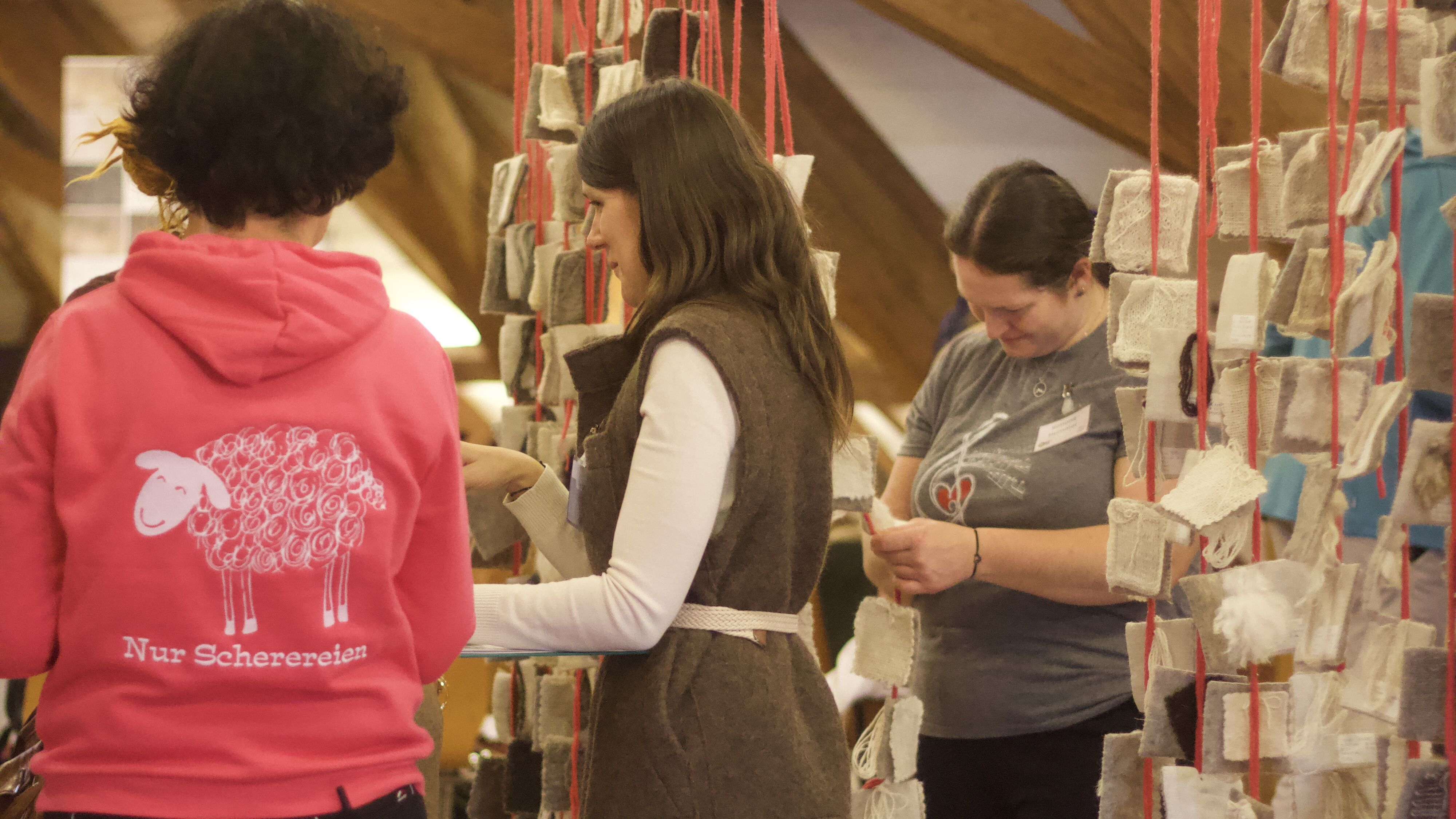 Vorträge zur Schafhaltung in Österreich, Verarbeitungs- und Vermarktungsmöglichkeiten lieferten interessanten Input und eine kleine Ausstellung verschiedener Initiativen mit diversen Spielarten der Schafwolle bereicherte den Tag. So konnten in etwa bunte Wollsorten des Ötztaler Schafwollzentrums, Schafwollpellets von Vollschaf, gewalkte Stoffe von Heratex, liebevolle Produkte des Wollgartls, gefilzte Babyschlafsäcke von Wollwert, Bettdecken der Wollwerkstatt Texing und die zu 100% in Österreich produzierte Weste von AUTwool bewundert und befühlt werden. Beim Stationenbetrieb konnte der Weg der Wolle von der Schafhaltung über die Schur bis hin zur künstlerischen Verarbeitung betrachtet und diskutiert werden. Nicht zu vergessen, die einmalige Gelegenheit des „Wool Tastings“ der Wolle von 13 heimischen Schafrassen. Als runder Abschluss des Tages gestaltete sich die Podiumsdiskussion, die unter anderem Einblicke in das Design von nachhaltigen Schuhen und Westen gab, bei denen Schafwolle die entscheidende Rolle spielt.