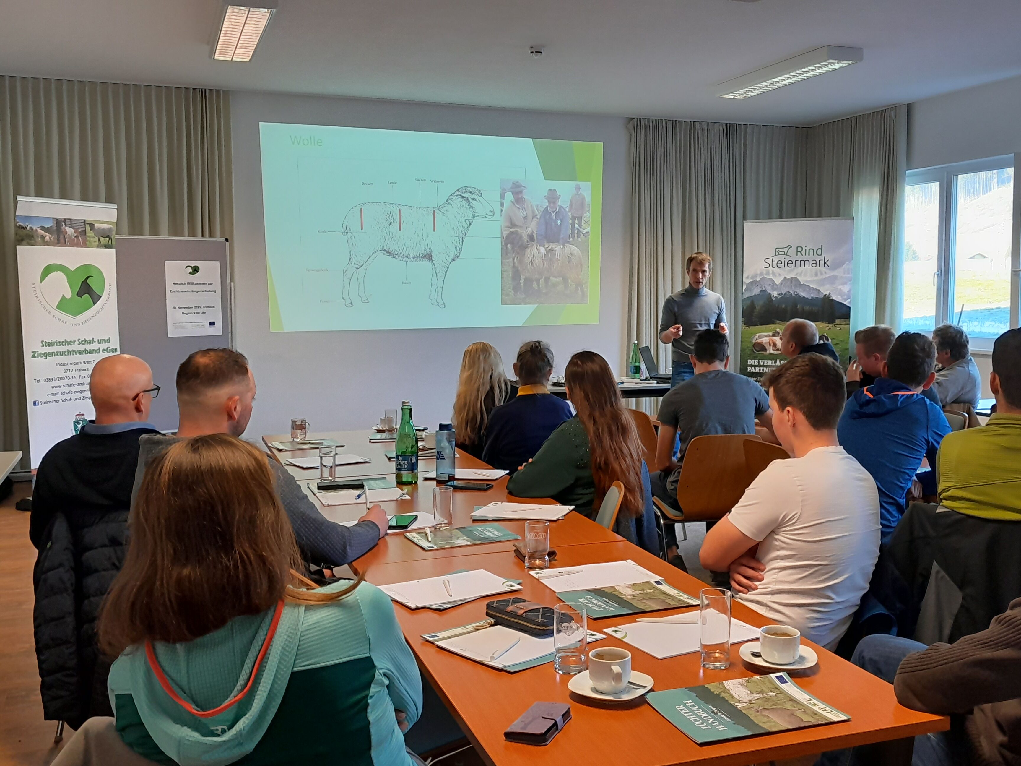 Am Freitag, den 28. November, fand in Traboch die traditionelle Schulung für steirische Neueinsteigerinnen und Neueinsteiger in die Schaf- und Ziegenzucht statt. Rund 30 Teilnehmerinnen und Teilnehmer, allesamt bereits praktizierende oder angehende Zuchtbetriebe mit insgesamt 14 verschiedenen Schaf- und Ziegenrassen, nahmen an der ganztägigen Veranstaltung teil und erhielten einen tiefen Einblick in die wichtigsten Grundlagen und Anforderungen moderner Zuchtarbeit.
